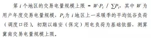 第三十六条 北京电力交易中心于每年 11 月 30 日前将扣除张家口电采暖和冬奥会场馆设施用电量后的用户次年年度交易电量规模,按规则分配至北京、天津、冀北和冀南,作为各地交易电量规模上限。在冀北交易电量规模内,对张家口地区的电能替代用户和高新技术企业给予一定倾斜,具体由河北省政府相关部门确定。