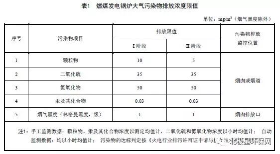 4.1.1 自本标准实施之日起,新建燃煤发电锅炉执行表1中II阶段规定的排放限值。