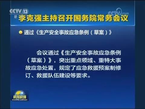 安全生产,责任重于泰山。5日召开的国务院常务会议通过了《生产安全事故应急条例(草案)》,对应急工作体制、应急事故处置、应急救援措施等方面内容提出了新的要求。